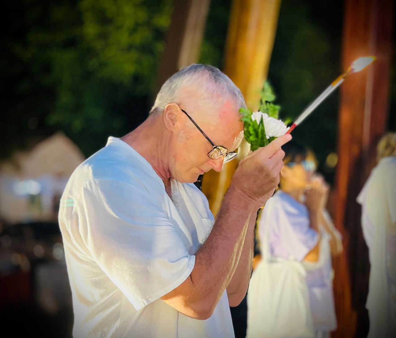 In 1988 he and his wife, Kathryn, under the direction of The Most Venerable Ajarn Tong, began assisting in the meditation courses at Wat Ram Poeng and travelled to give courses in Mexico, and later both travelling along to assist The Most Venerable Ajarn Tong in giving courses and establishing centers in various places, such as America, Mexico, Canada, Europe, Puerto Rico, Columbia, Israel, Russia and numerous pilgrimage courses in the Holy Sites of India & Nepal. (For more information check out our branches).